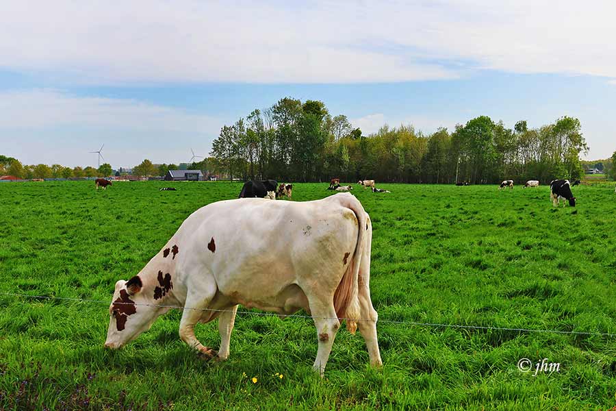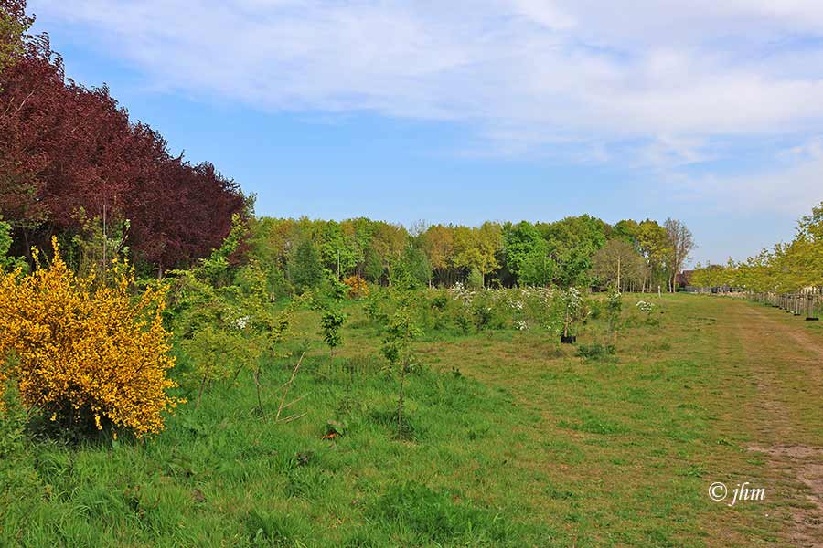 Adegem 9°C hoge sluierwolken bedekken deels de blauwe lucht, 4 Bft noordoostenwind. Voelt koud aan door de strakke wind om te sporten.