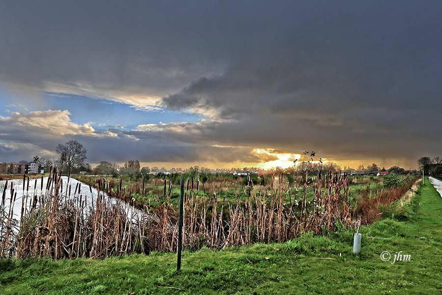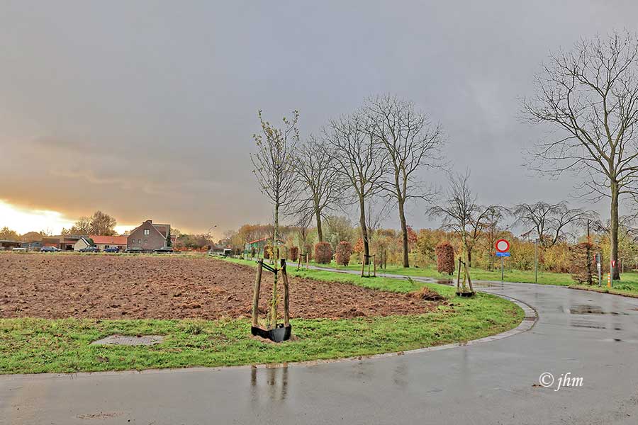 Adegem Zandakkers en Ringbaan, maandagvoormiddag: 5°C, felle buien van regen en korrelhagel, frisse 3Bft noordenwind. Geen weer voor buitenactiviteiten: ik moest fietsen in de regenbui!