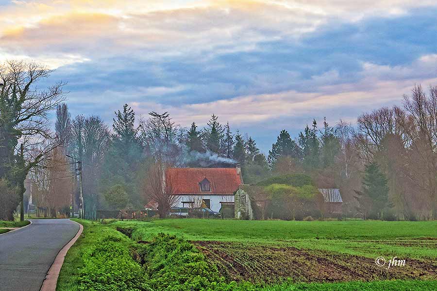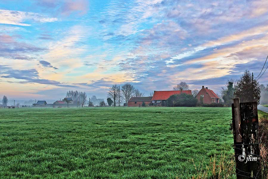Maldegem, Akkers en Butswerve: koude ochtend met vorst aan de grond, nu +2°C, zeer mooie opklaringen , wolken aan de kustzone, windstil. Goed voor buitensporten, maar met gepaste kledij…