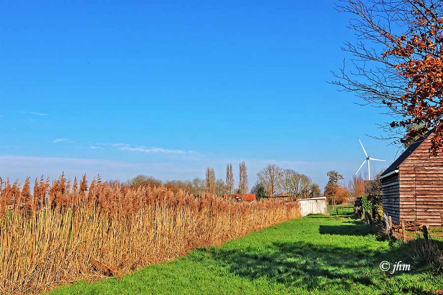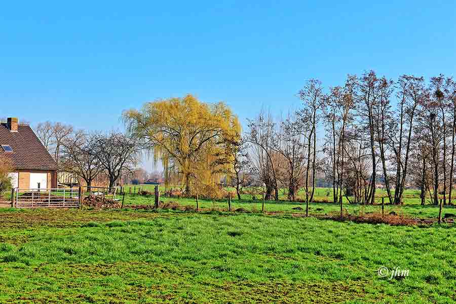 Zondagvoormiddag te Adegem, in de Gouden Dries: 8°C, lichte sluierwolken maar zeer mooie opklaringen, 4Bft zuidenwind. Goed om te lopen of te wandelen, fris maar mooi.