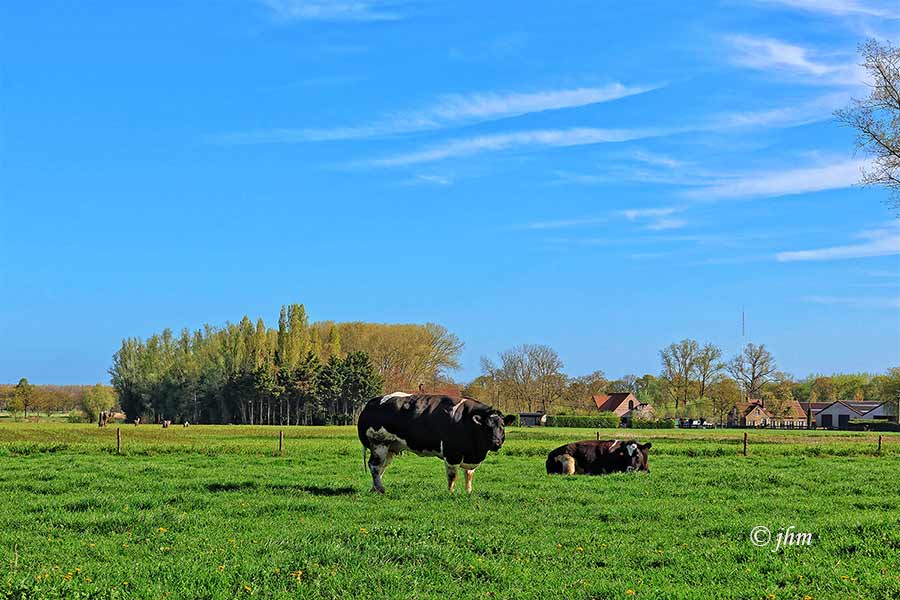Deze voormiddag in de Hollebeekstraat te Adegem: zeer mooie lentevoormiddag met helderblauwe lucht en 13°C, 3Bft zuidoostenwind. Heerlijk om buiten te vertoeven, onder welke vorm ook.