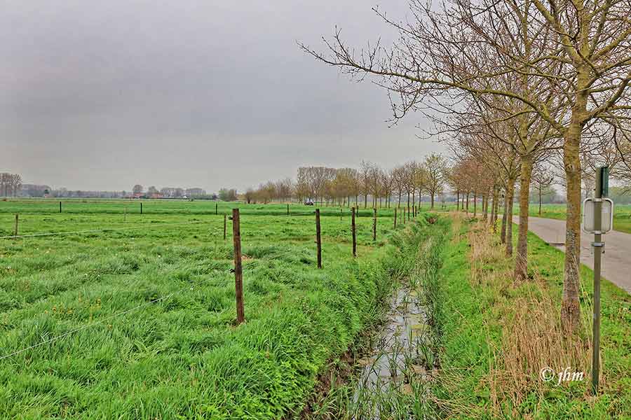 Adegem, Celieplas en Waleweg, zaterdagvoormiddag: 13°C, halfhoge sluierbewolking, de wind maakt het fris. 4Bft zuidenwind. Voelt niet prettig aan om buiten te sporten.