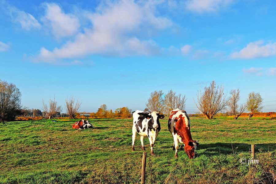 Maldegem-Eibey op zondagvoormiddag: 10°C, enkele verloren schapenwolken aan de hemel, 2Bft zuidwestenwind. Heerlijk wandelweer in November!