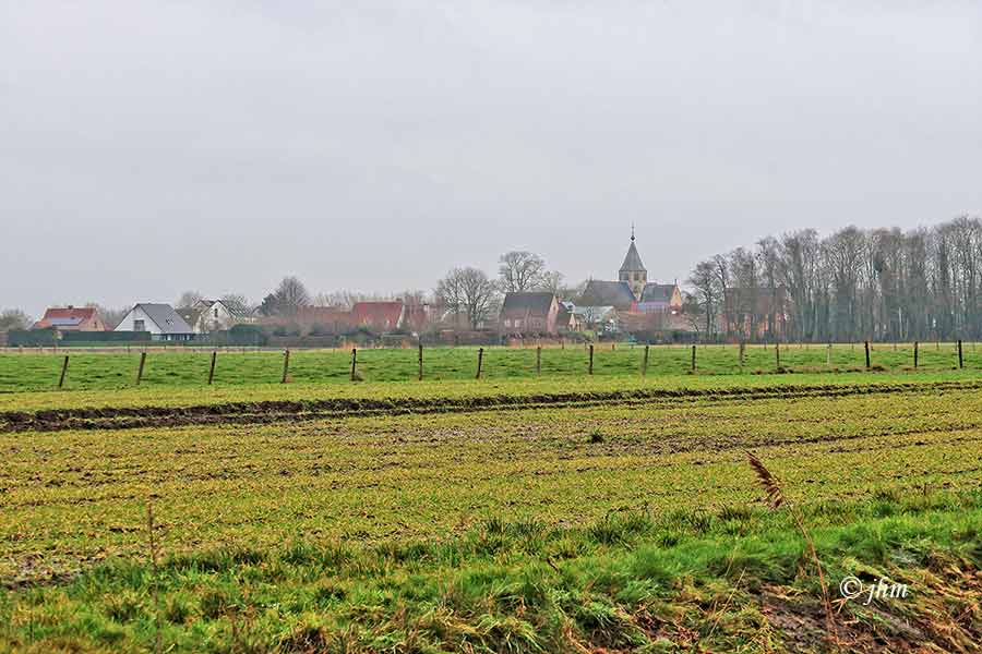 Aardenburg-Den Biezen, deze voormiddag: +3°C, de zon probeert, maar met weinig succes, koude 3Bft oostenwind. Niet ideaal voor buitensporten.