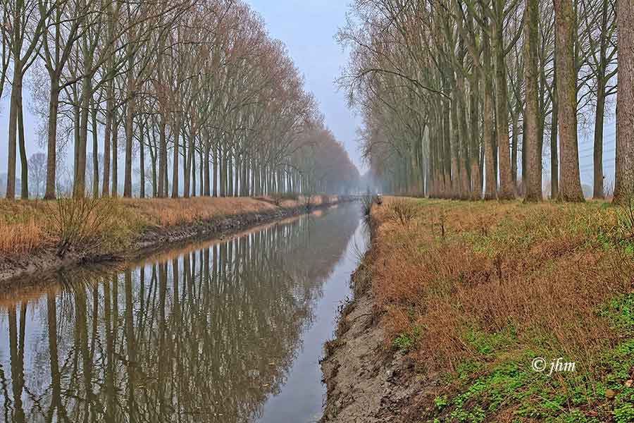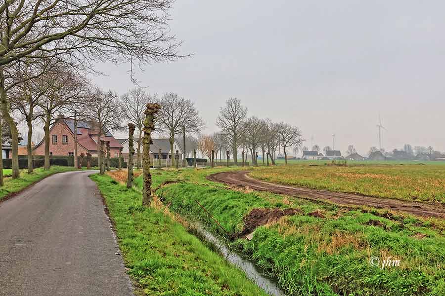 Vrijdag voormiddag Vossenhol Maldegem 12°C, nevelig de zon probeert, weinig wind uit het zuidwesten. Goed om buiten te wandelen of te fietsten.