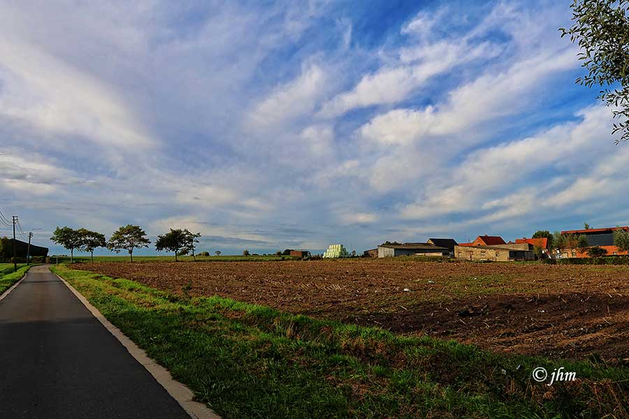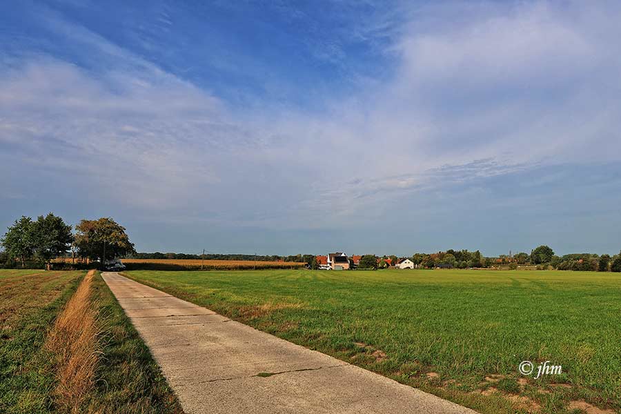 Mooie herfstvoormiddag met 13°C te Adegem, weinig wolken en een voelbare 3Bft noordenwind. Zeer goed om te wandelen en fietsen.