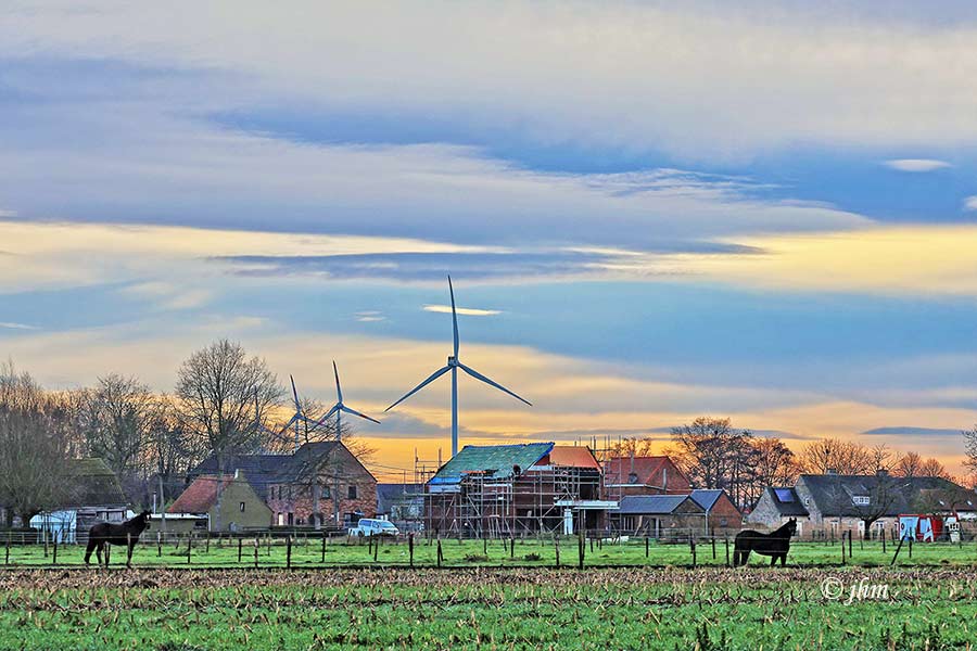 Maldegem-Vossenhol, zaterdagvoormiddag: 4°C, nachtvorst in de lage weiden, mooie blauwe luchten, 2Bft zuidoostenwind. Fris, maar heerlijk wandel- en fietsweer.