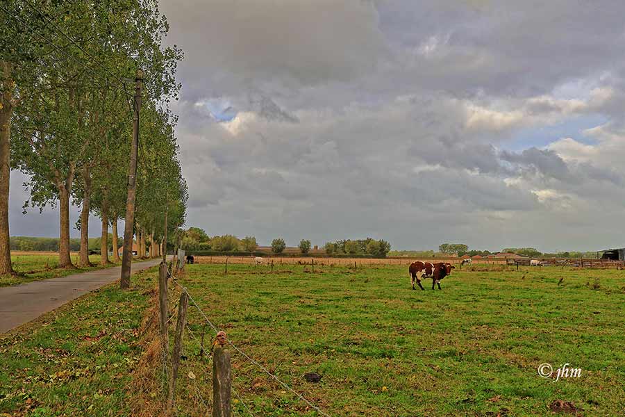 Zondagvoormiddag te Donk: 14°C, laaghangende bewolking met af en toe een spat regen, 5Bft westenwind. Het was hard op de pedalen duwen tegenwind!