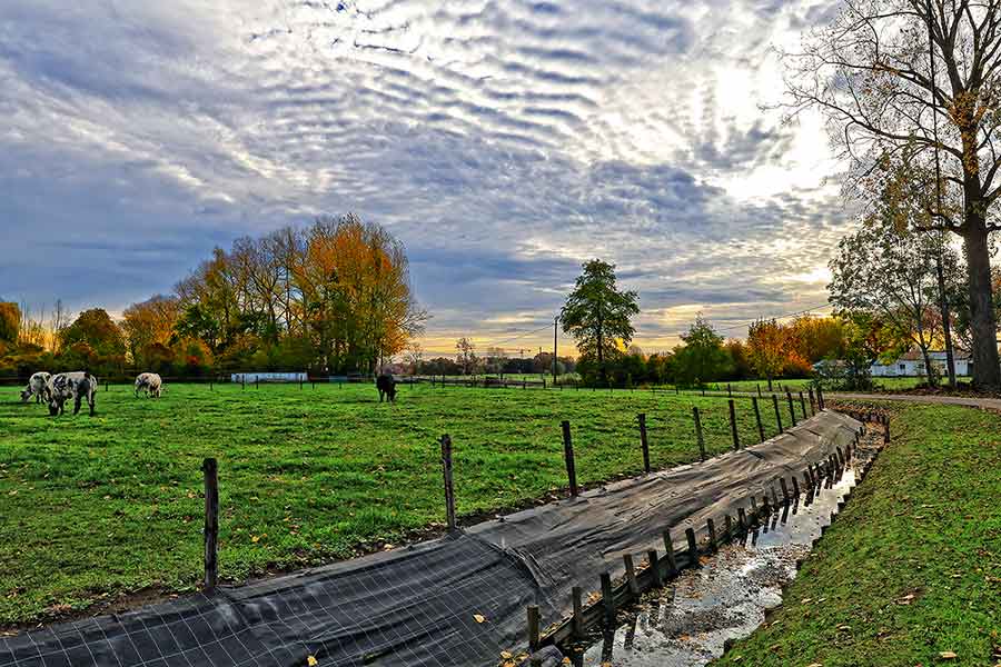 Maldegem-Eibey op zondagvoormiddag: 10°C, enkele verloren schapenwolken aan de hemel, 2Bft zuidwestenwind. Heerlijk wandelweer in November!