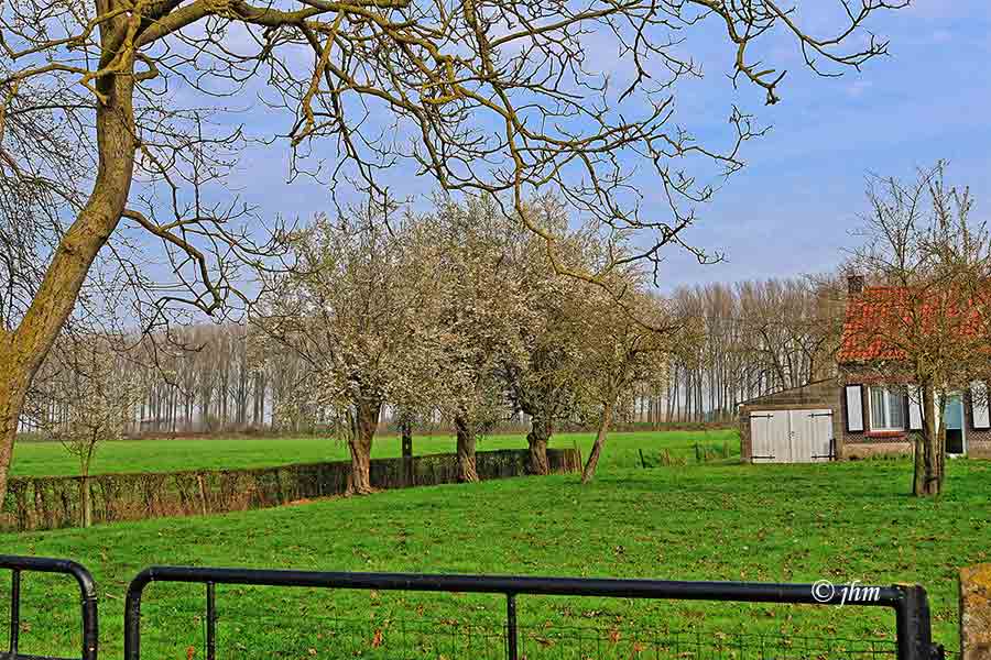 Maldegem vrijdagvoormiddag 7°C, rond de “Vier Hofsteden” hoge sluier bewolking, 2Bft noordoostenwind. Frisser dan gisteren, maar zeker doenbaar voor buiten activiteiten.